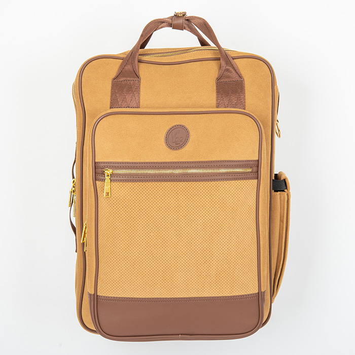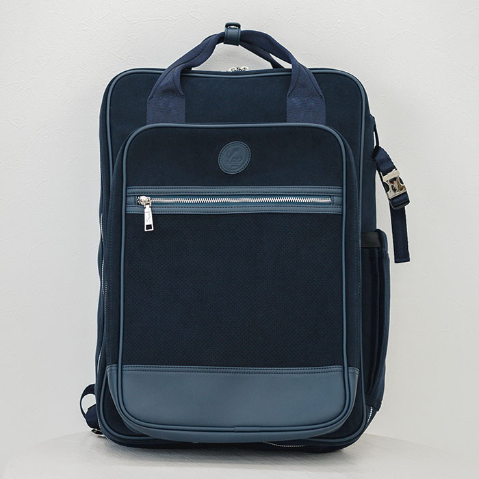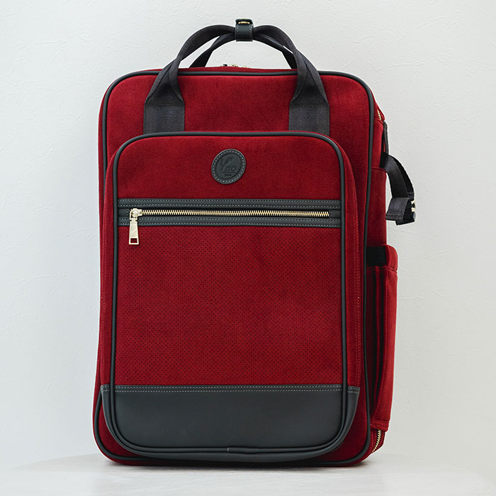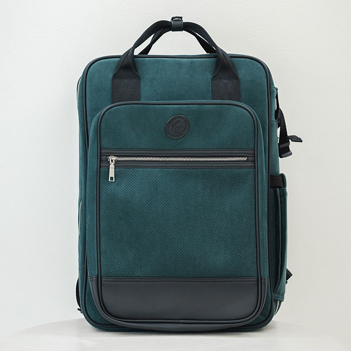 多数の内ポケット、譜面台やドリンクの入る深めのサイドポケット等、ケースバッグのその他機能は従来品と変わらず、フロントデザインはマチ付きで手前に大きく開くデザインです。